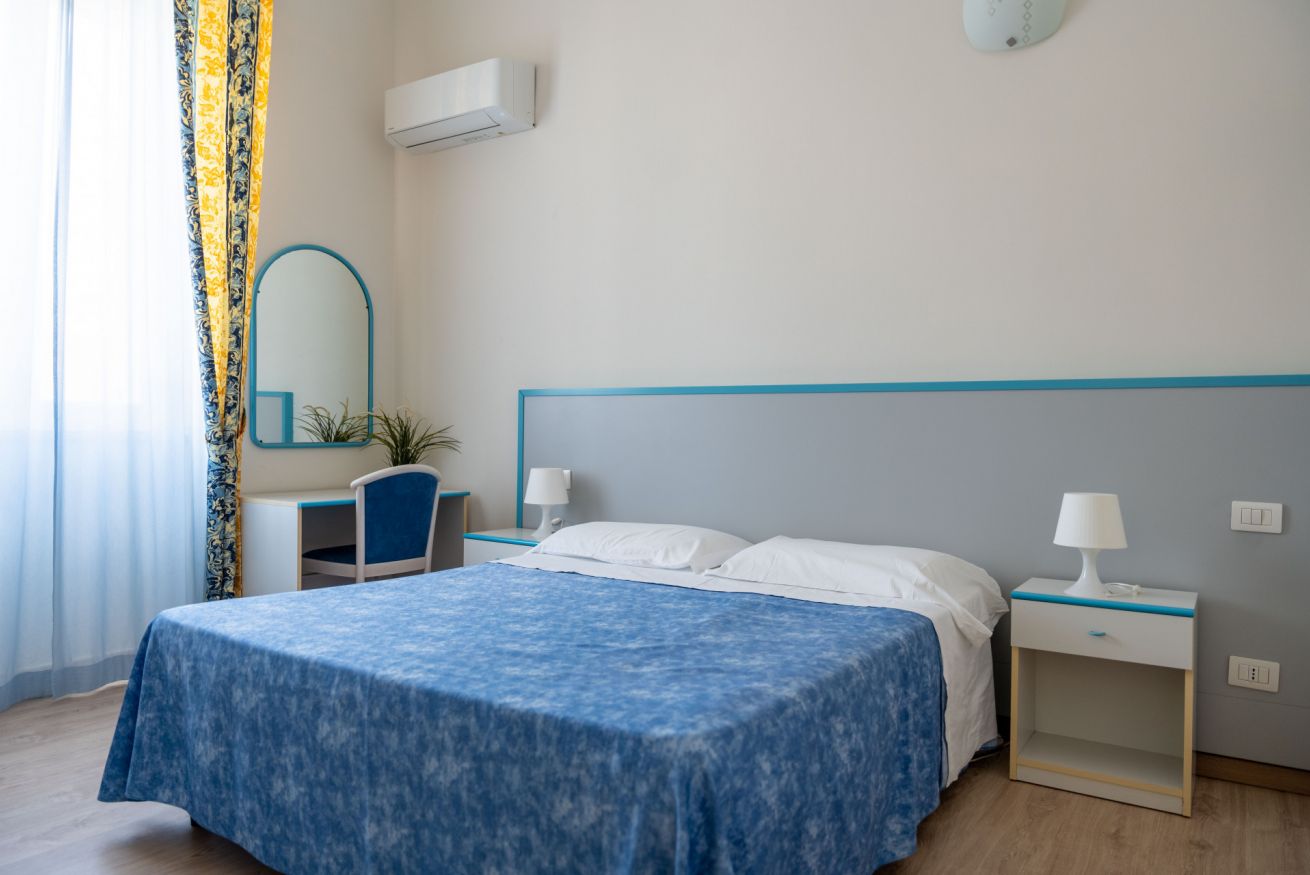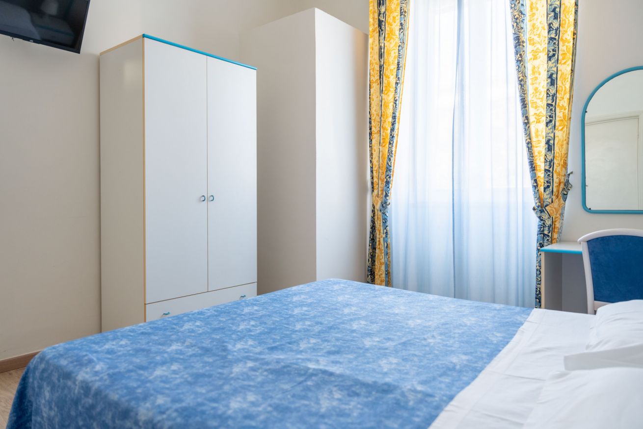 Scegli la comodità di soggiornare in pieno centro, a pochi passi dal mare e vicinissimo alla stazione. Questa camera matrimoniale al secondo piano dell’Hotel Centrale è la soluzione perfetta per coppie, due persone o viaggiatori singoli che desiderano comfort e posizione strategica.