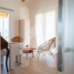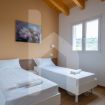 Attraverso una moderna scala interna si accede al piano superiore, la zona notte è composta da tre camere ognuna con bagno privato. Al piano d’ingresso, nell’ambiente riservato, il divano può trasformarsi all’occorrenza in letto matrimoniale, servito dal bagno al piano.